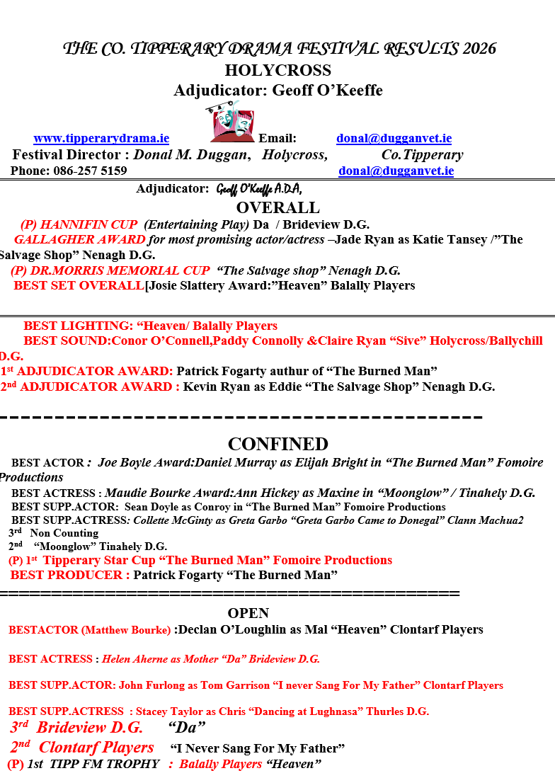 HOLYCROSS www.tipperarydrama.ie Email: donal@dugganvet.ie